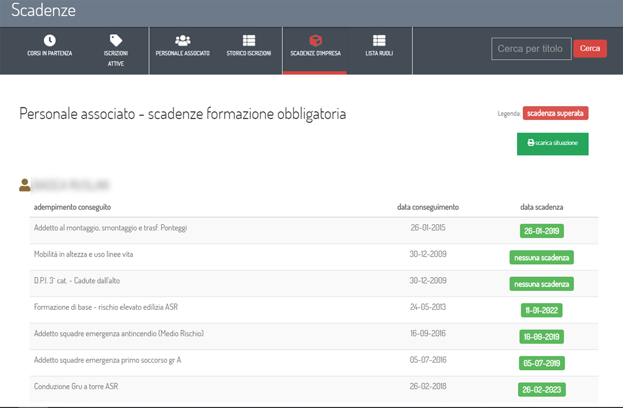 Tramite accesso riservato, anceh via app da smartphone e tablet, si può accedere in qualsiasi momento ad attestati, patentini ed abilitazioni personali.